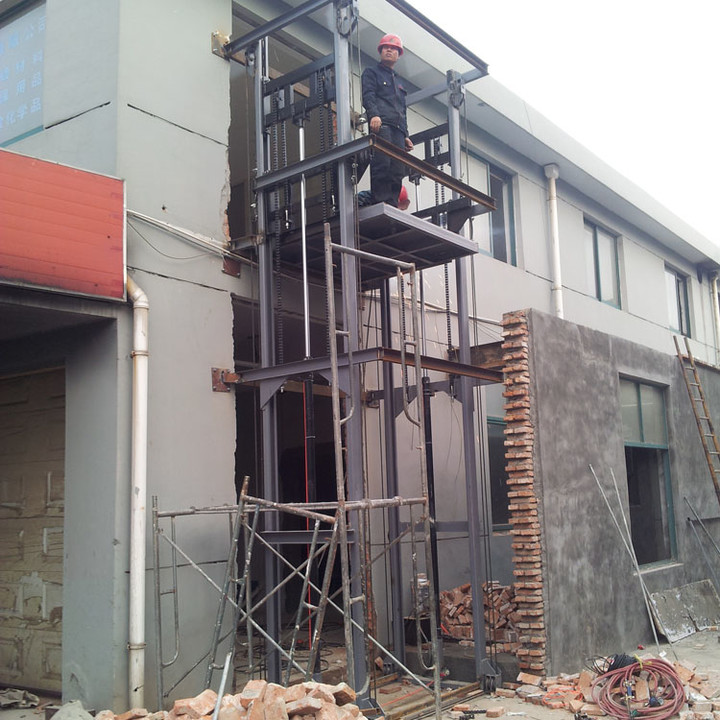產品簡介(jiè):室(shì)外2層液壓升降貨梯安裝現場(chǎng)