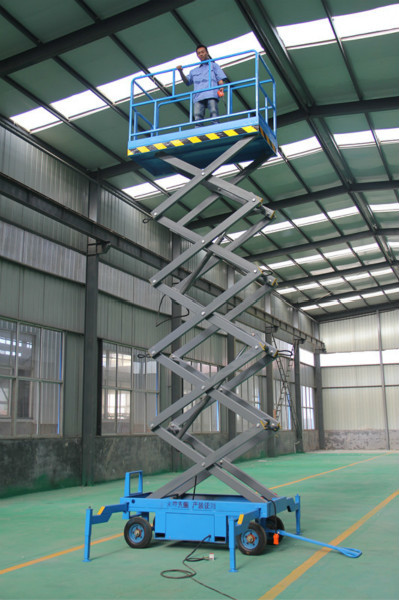 移動升降機廣(guǎng)泛用(yòng)於工廠、糧庫、機場、加油站(zhàn)、機關、碼(mǎ)頭、野外電力(lì)、路燈維護及建築裝修等各種行(háng)業。移動升降機可根據用戶(hù)使用要(yào)求設計製造。主(zhǔ)要特點就是使用人員可以不用下升降台,就可控製機械升降並且行駛到其他的工作地點,自身(shēn)具有行走及轉向驅(qū)動功能,不需人工牽引,不需外接電源移動靈活方便,令高空作業更方便快捷,是現(xiàn)代企業高(gāo)效安全生產之理想高空作業設備。輔助自行式液壓升降機,具有自動行走功能,能夠在不同(tóng)工(gōng)作狀態下,不需外接電源,不需外來動力牽引,移(yí)動靈活、操作方便、升降自如,隻需一人(rén)便可完成前進(jìn)、後退、轉向、快、慢速(sù)行走和上下(xià)等動作,省工、省力。