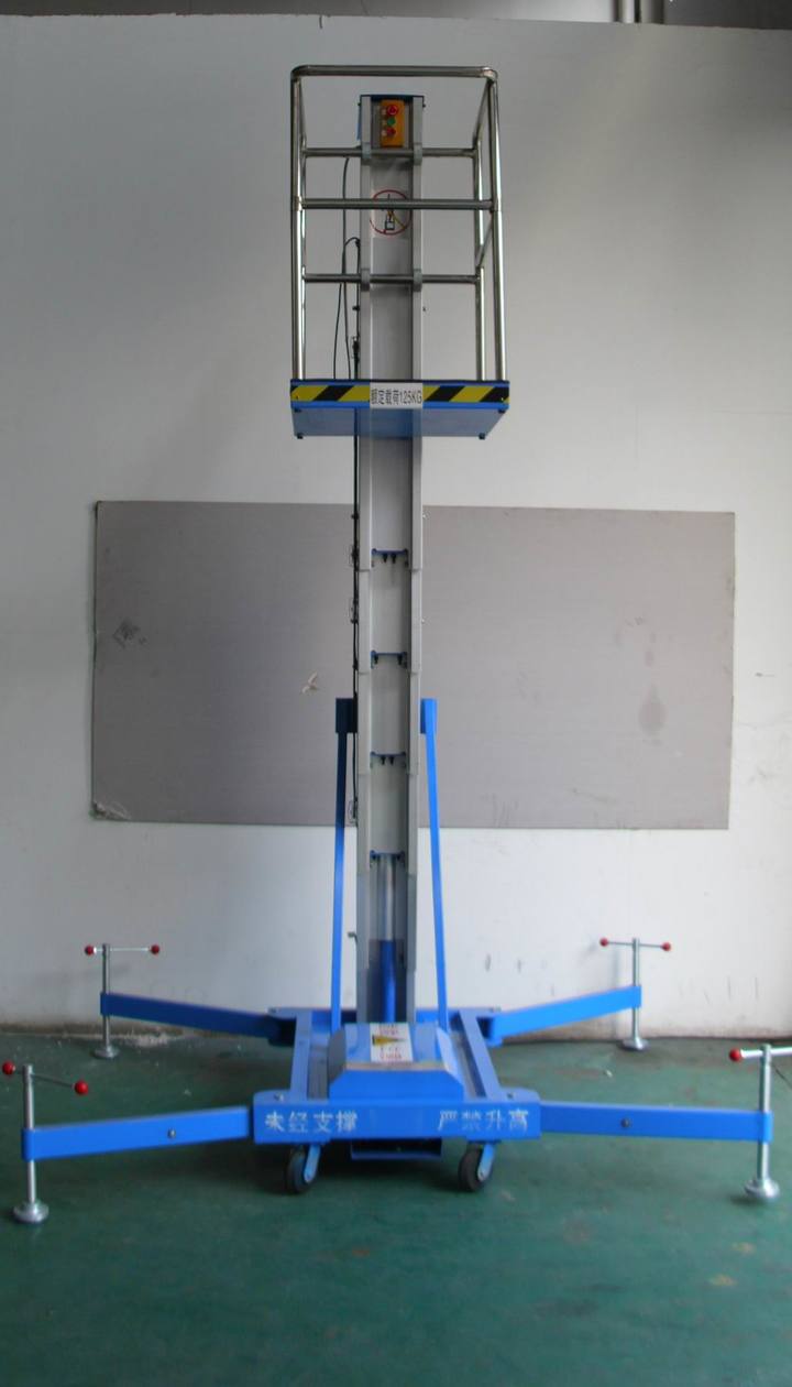 單桅柱式鋁合金升降平台采(cǎi)用高強度(dù)優質鋁合金升降機材料,具有造型美觀、體(tǐ)積小、重(chóng)量輕、升降平衡、安全可靠等(děng)優點,廣泛用於工廠、賓館(guǎn)、餐廳、車站、機場影劇院、展覽館等(děng)場(chǎng)所,是保養機具、油漆裝(zhuāng)修、調換燈具、電器、清潔保養等用途的最佳安全伴侶。